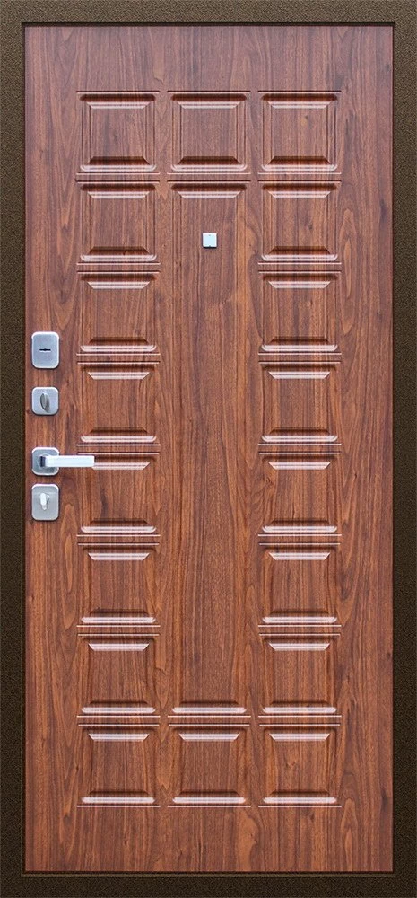 Надежная входная Дверь Спартак Орех темный премиум класса по цене 33 671 руб. Большая толщина стали защитит от проникновения в ваш дом, квартиру или коттедж. Используется очень качественная фурнитура: замки, цилиндры, ручки, защелки. Покрытие и отделка двери изготовлено под внимательным контролем производителя. Дверь имеет долгий срок службы и гарантию.